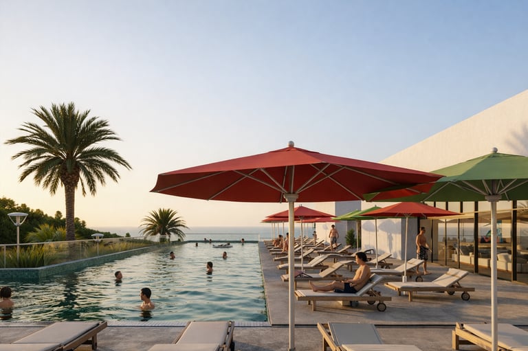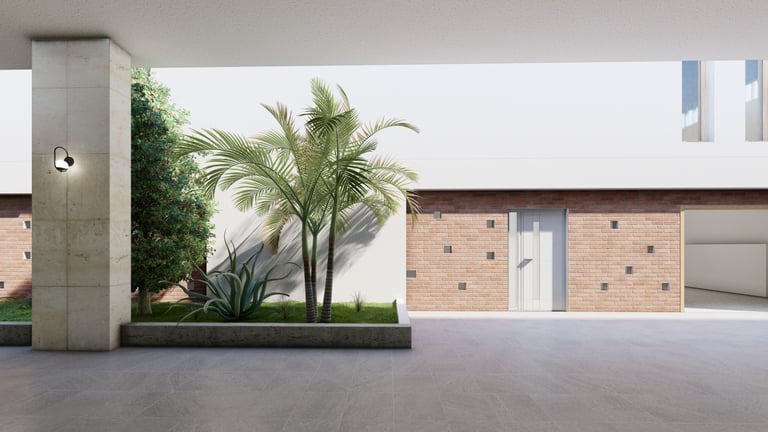 Ce projet résidentiel et commercial de haut standing intègre intelligemment une servitude liée à la proximité d'un Oued. Notre approche architecturale privilégie la sécurité grâce à des dispositifs de protection anti-inondation. L'ensemble s'articule autour d'une zone tampon paysagère, véritable poumon vert qui sert de jardin collectif tout en optimisant la lumière naturelle et la ventilation naturelle au cœur du bâti. Une réalisation alliant élégance urbaine et durabilité environnementale en Algérie.