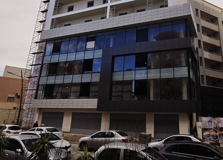Cet immeuble à usage mixte à Kouba en Algérie. Alliant harmonieusement plateaux de bureaux ergonomiques, espaces commerciaux dynamiques et résidences privées de luxe, l'édifice intègre un système domotique de pointe pour un contrôle intelligent de l'énergie et de la sécurité. Véritable sanctuaire urbain, les deux niveaux d'entre-sol abritent un Hammam SPA exclusif, offrant une expérience de bien-être inégalée au cœur d'une structure résolument moderne.