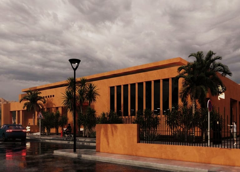 Porté par la vision d'un jeune investisseur dynamique, ce centre commercial réinterprète l'esprit iconique du « Souk El Fellah » pour l'adapter aux exigences du XXIe siècle. Bien plus qu’un espace de vente, ce projet se veut une alternative concurrentielle forte, alliant accessibilité et modernité. L'architecture, résolument efficace, puise sa force dans l'utilisation de matériaux locaux et de solutions ancestrales pour répondre aux défis thermiques du Sahara